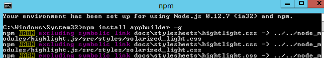 CMD /C C:\"Program Files (x86)"\nodejs\npm update -g appbuilder; $LASTEXITCODE